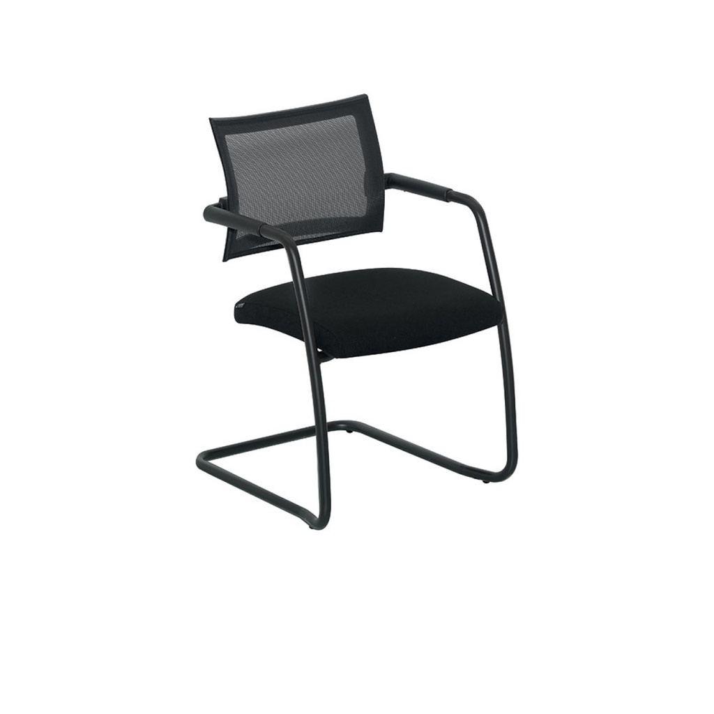 Fiksni konferenčni stol IGEA s sedalnim delom iz ognjevarnega tekstila in hrbtnim delom iz mrežastega materiala za dodatno zračnost. Izbirate lahko med krom ali črno izvedbo strukture stola.