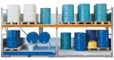 Regal za shranjevanje sodov | 2 nivoja za 16 sodov po 200 litrov | pocinkan zbirni pladenj | S-16