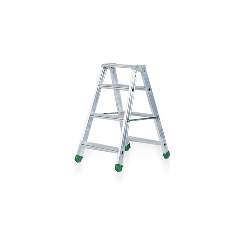 Dvostranska lestev iz eloksiranega aluminijastega materiala s 4 + 4 nedrsečimi stopnicami.